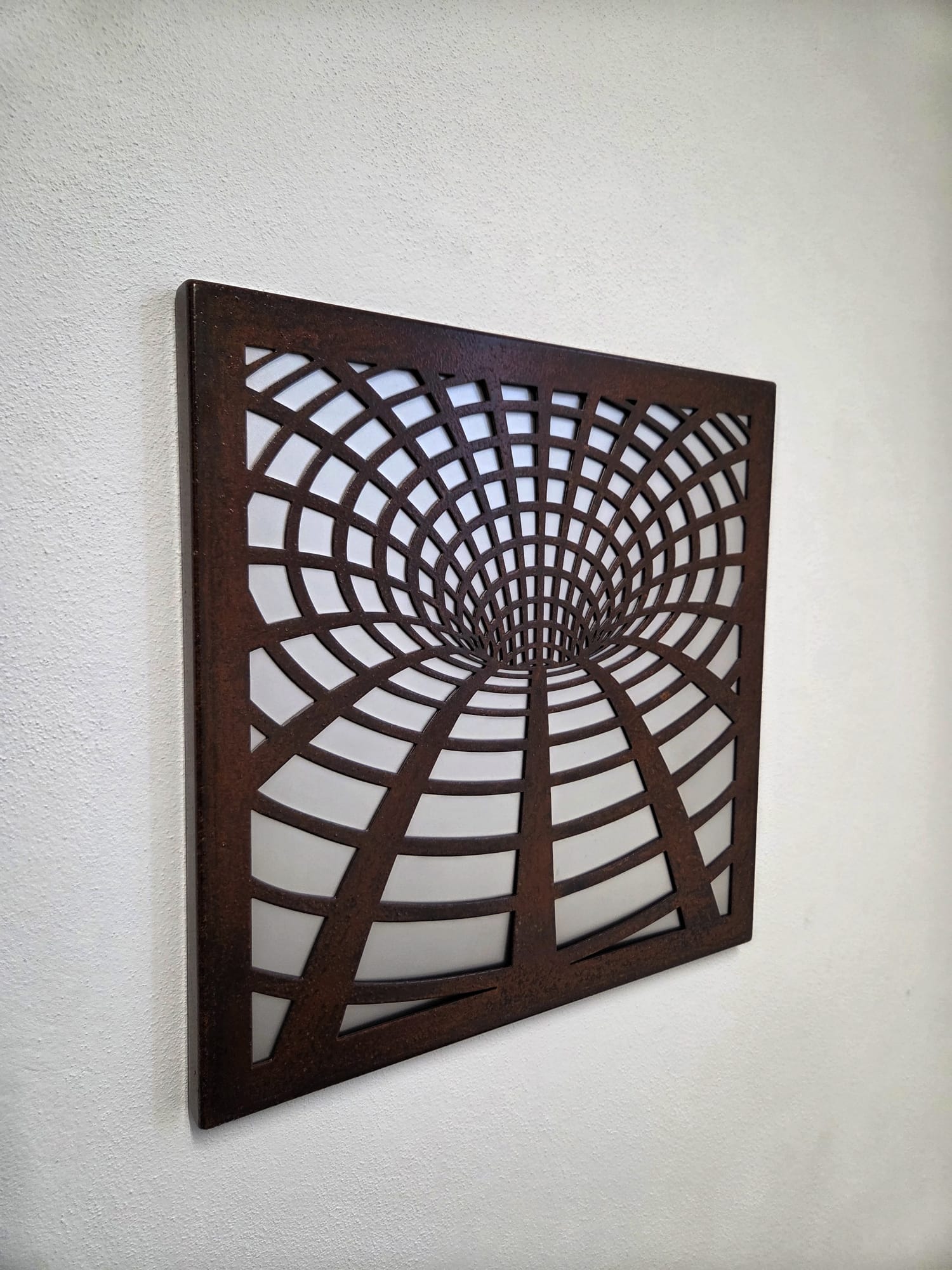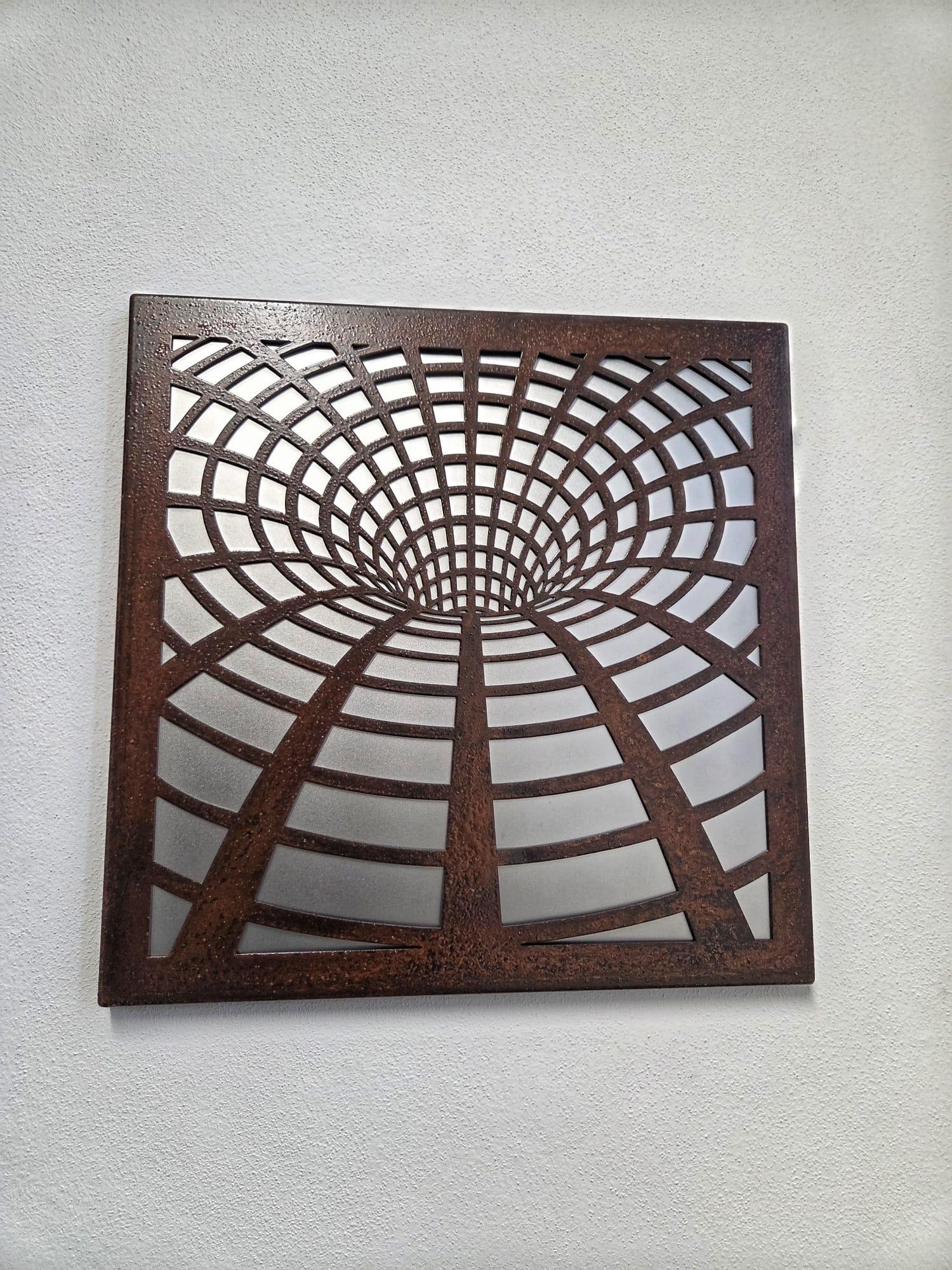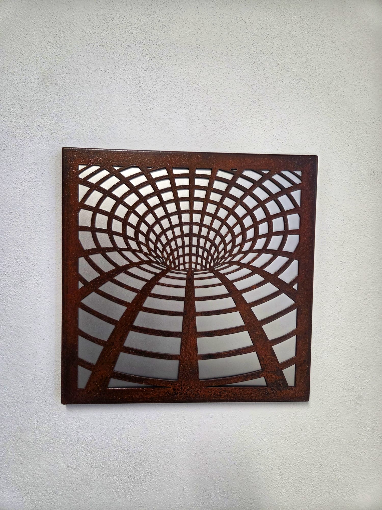 Quadro in ferro e acciaio inox da parete, realizzato in diversi motivi o disegni.
